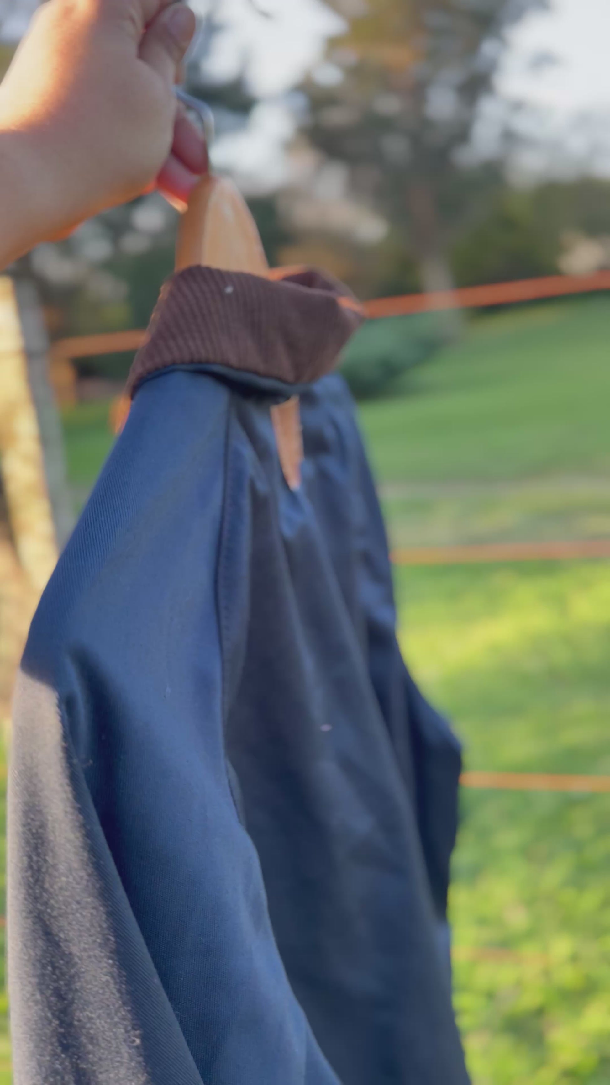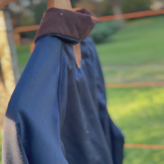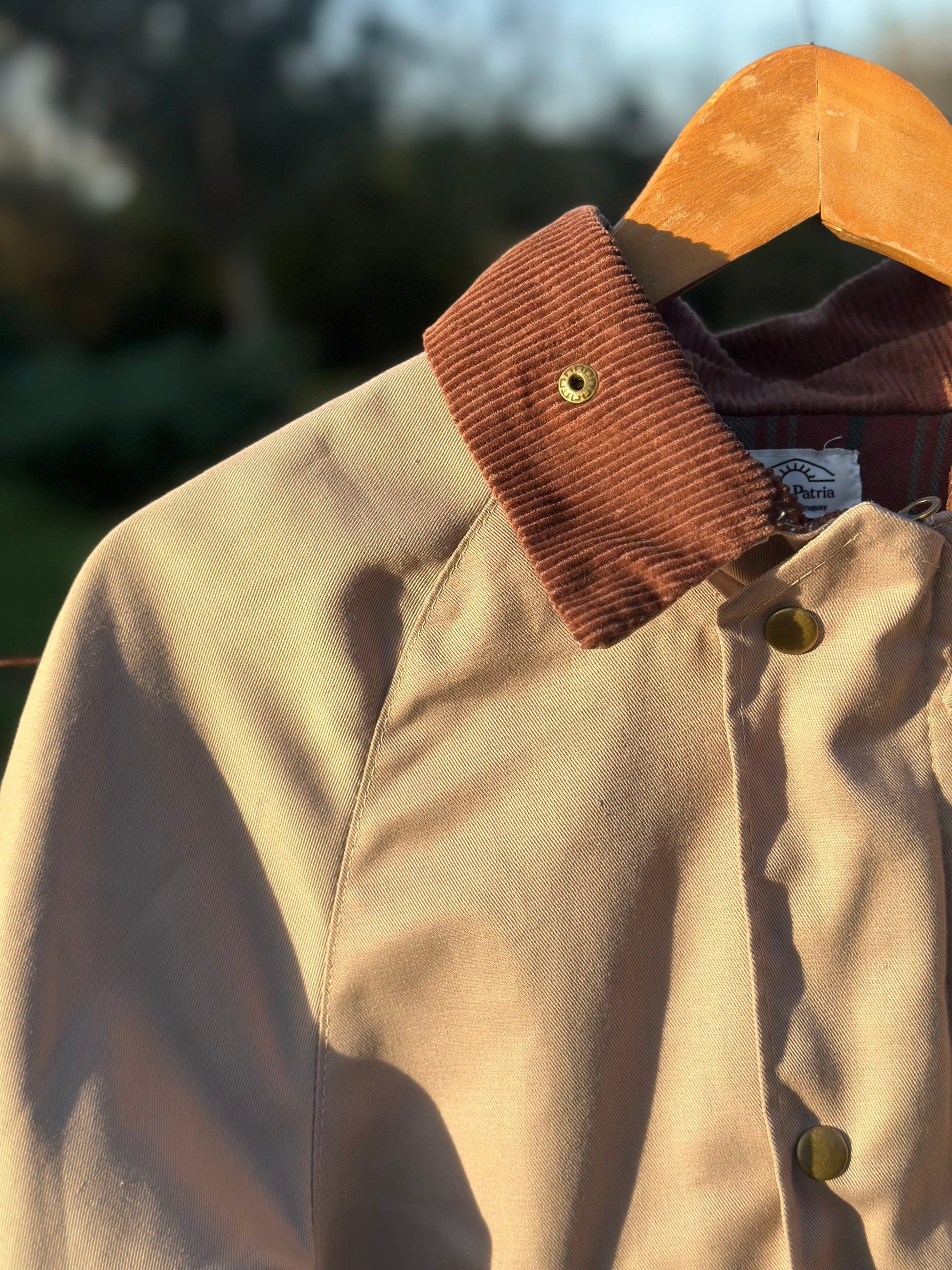 Cuello de pana, gabardina super resistente, forrada de tela muy calentita a cuadros.