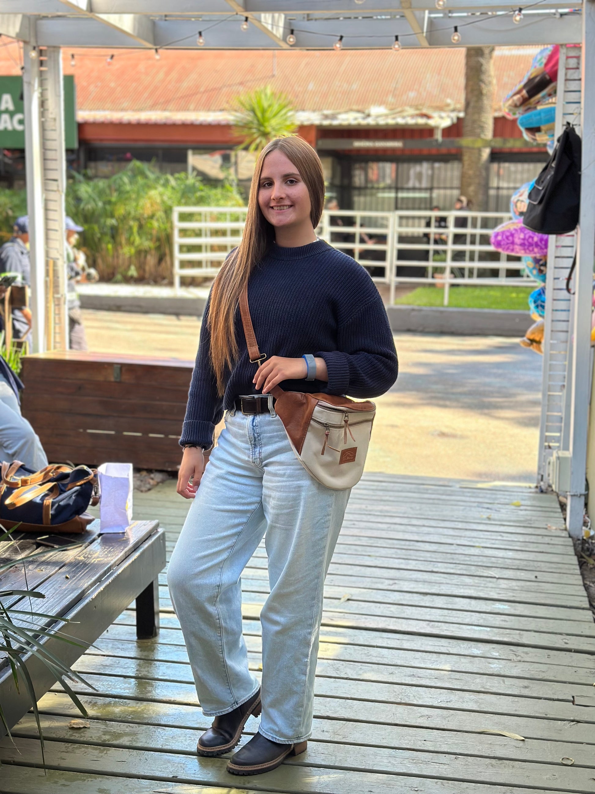 Riñonera de lona y cuero.