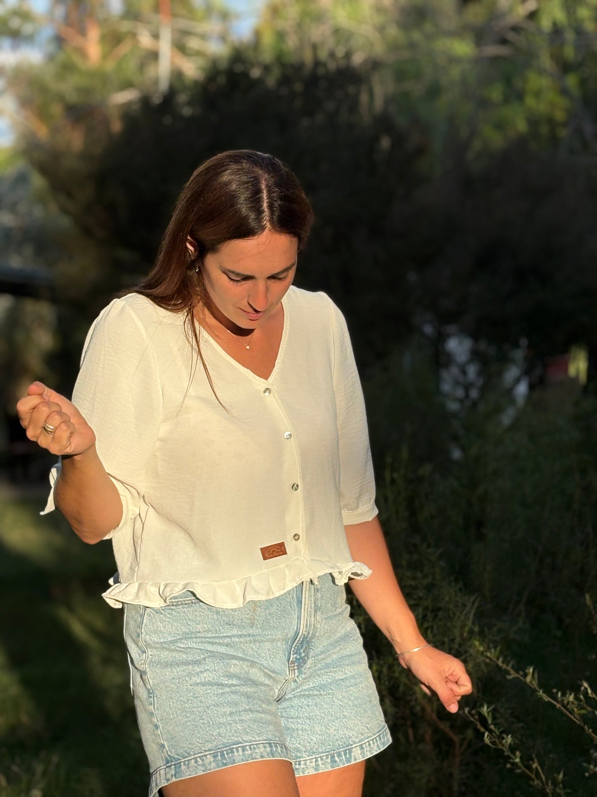 Blusa con botones de nácar natural. Con una molderia que ajusta a cualquier cuerpo, con una tela suave y fresca.